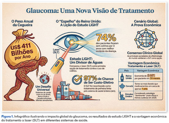 A crescente demanda por cuidados oftalmológicos impõe desafios relevantes à sustentabilidade dos sistemas públicos de saúde, especialmente no manejo do glaucoma, uma doença crônica, silenciosa e de alto impacto socioeconômico. Este artigo analisa a cegueira sob a perspectiva da economia da saúde, discutindo evidências internacionais e nacionais que sustentam a mudança do modelo centrado no uso contínuo de colírios para estratégias de intervenção precoce. A partir de estudos clínicos, análises de custo-efetividade e da experiência do Sistema Único de Saúde, o texto explora o papel da trabeculoplastia seletiva a laser como alternativa clinicamente eficaz, economicamente viável e socialmente equitativa, apontando caminhos para sua incorporação estruturada no Sistema Único de Saúde.