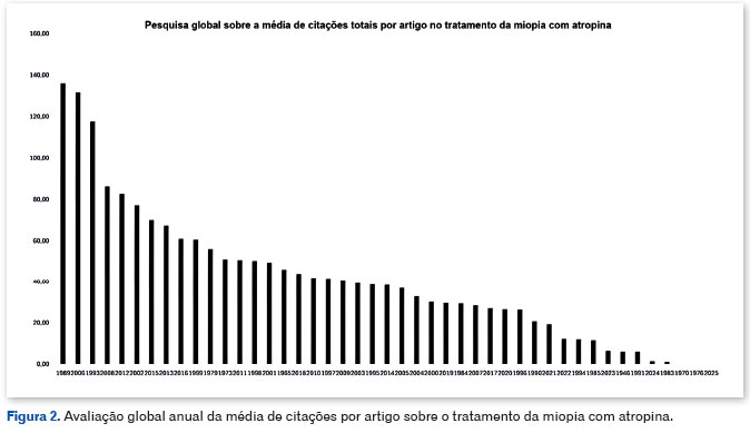 A Figura 2 ilustra a avaliação global anual da média de citações por artigo sobre o tratamento da miopia com atropina.