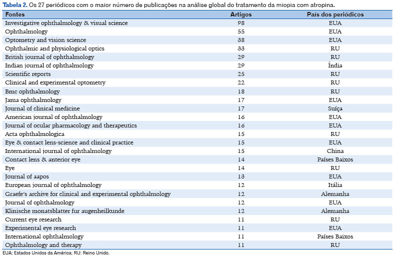 A Tabela 2 lista os 27 principais periódicos com o maior número de publicações. Dez são dos Estados Unidos e nove do Reino Unido. A Alemanha vem em seguida, com dois artigos, e a China, a Itália e os Países Baixos contribuem com um artigo cada.
