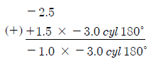 . This expression when transcribed to a cross cylinder corresponds to +1.5 × -3.0 cyl 180°. The addition of the intended correction of the spherical error with the cross cylinder leads to