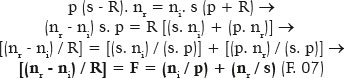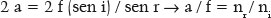 Das F. 48 e F. 44, mas sendo, nelas, genericamente os ângulos i e r substituídos por suas versões genéricas, respectivas, j e g, em que (sen g)/(sen j) = e: