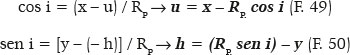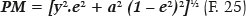 O conjunto (1 – e2) = k pode ser útil como simplificação de equações, como se verá a seguir. De qualquer modo, a F. 23 traz a resposta do valor de j em função do de PM (ou vice-versa). Mas, como sen j = y / PM, vem:
