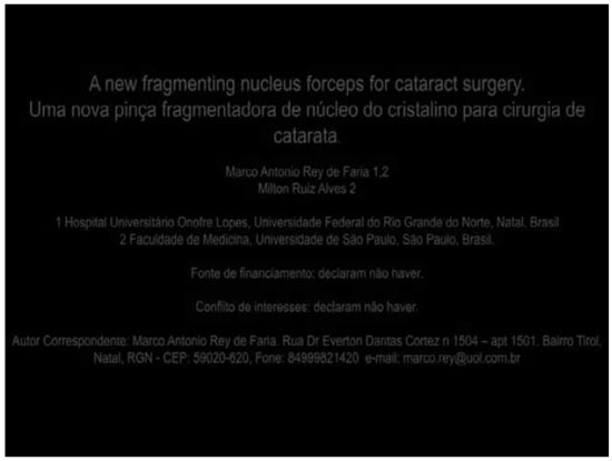 De acordo com a Organização Mundial da Saúde, as cataratas são a principal causa de cegueira reversível. Estima-se que até 2020 haverá cerca de 40.000.000 de pessoas afetadas. O único tratamento eficaz é a cirurgia, sendo a facoemulsificação o padrão-ouro. Baratear seu custo é uma necessidade importante nos países em desenvolvimento. Para isso, desenvolvemos uma pinça que auxilia na fragmentação mecânica do núcleo e, assim, diminui a quantidade de ultrassom utilizado na cirurgia, promovendo menos danos oculares. Sua eficácia foi demonstrada experimentalmente e, neste vídeo, além de apresentar a nova pinça e seus resultados experimentais, demonstramos a técnica para seu uso.