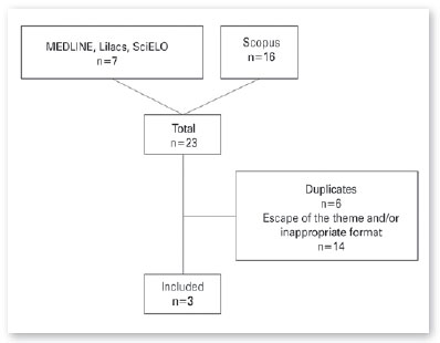 The search generated a total of 23 articles (7 articles in the Pan American Health Organization’s Virtual Health Library [VHL] search engine, which provides access to MEDLINE, LILACS, and SciELO, and 16 in the Scopus database). After the exclusion of duplicate articles, the articles obtained were read, eliminating those that did not match the subject or did not meet the established inclusion criteria (Figure 1).