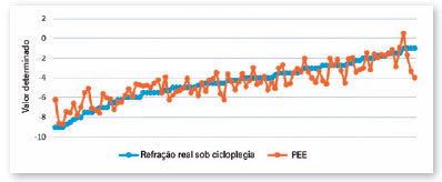 Após o desenvolvimento da fórmula (escolha do modelo de regressão), comparou-se os valores miópicos encontrados na RCC com os valores estimados pela fórmula proposta.