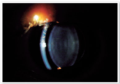 Figure 2. Narrowing of the anterior chamber demonstrated during preoperative phacoemulsification biomicroscopy.