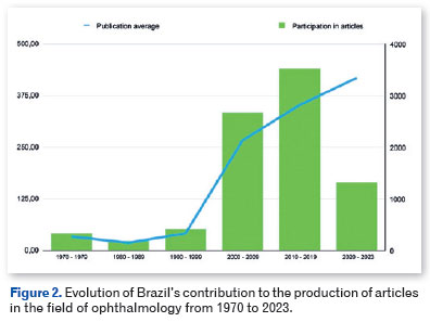 RESULTS: Out of the 128 journals selected by SCImago Journal & Country Rank, 46 were open access and 82 were not, collectively publishing a total of 489,579 articles. Brazil contributed 9,113 of these articles, accounting for 1.86% of all publications and 60% of those from Latin America. Within this context, Brazil's contribution to the top 10 journals was 0.88%, while in open access journals it was 4.22%. In the 20th century, Brazil published 993 articles in ophthalmology, and this number saw a significant increase from 2000 to 2023, with Brazil's ophthalmology publications rising to 7,118 articles during this period.