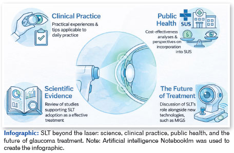 In Brazil, the challenge goes beyond efficacy: it is necessary to reconcile quality research on the treatment as well as its clinical applicability and viability within the Unified Health System (SUS). Considering its characteristics, SLT can expand access to public glaucoma programs by facilitating adherence and generating savings2,3.