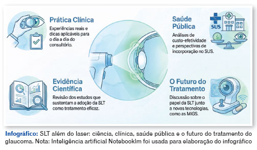 No cenário brasileiro, o desafio vai além da eficácia: é necessário conciliar ciência de qualidade, aplicabilidade no consultório e viabilidade dentro do Sistema Único de Saúde (SUS). O SLT reúne características que o tornam promissor para ampliar o acesso, reduzir barreiras de adesão e gerar economia para os programas públicos de glaucoma2,3.
