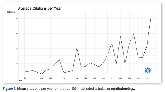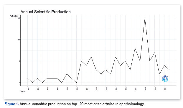 Bibliometric analysis is a valuable tool for evaluating the quality, quantity, and impact of scientific publications which helps clinicians and researchers identify key publications6. In recent years, bibliometric studies in ophthalmology have increased focusing on various sub-topics, such as myopia, cataracts, glaucoma, dry eye, and pediatric ophthalmology7-20.