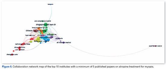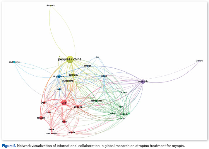 Conclusão: Esta análise bibliométrica revela um crescimento substancial na pesquisa sobre atropina para miopia, um problema de saúde global, enquanto a pesquisa está fortemente concentrada em um número limitado de países, impulsionada principalmente por instituições asiáticas. Essas descobertas destacam a necessidade de expandir os estudos para outros países por meio de colaborações internacionais multicêntricas.