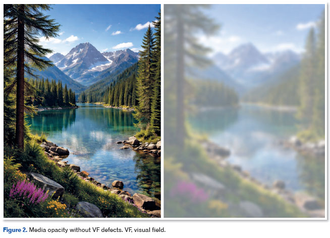 A. Opacity of media without a VF defect