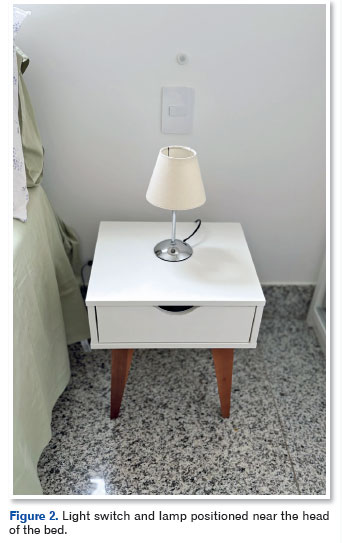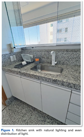 A combination of ambient lighting and task lighting is recommended, with adjustable intensity and even distribution of light. Lamps with diffusers, indirect lighting, and translucent curtains help control glare, especially in the case of individuals with cataracts, age-related macular degeneration, and retinopathies (Figure 1)8.