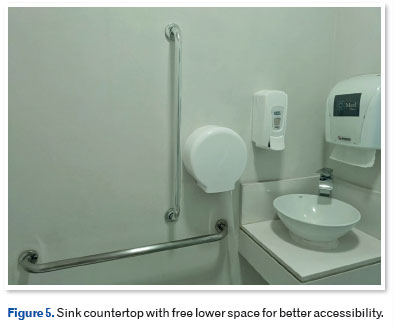 In the bathroom, using different colors for the toilet, sink, and wall contributes significantly to safety and spatial orientation (Figures 4, 5, and 6)11.